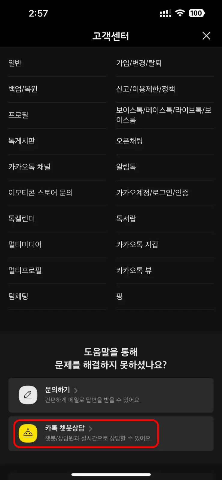 카카오 고객센터는 챗봇 상담이나 상담직원 연결을 통해 상담을 받을 수 있습니다.