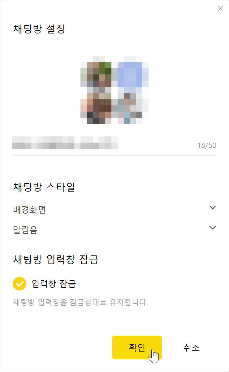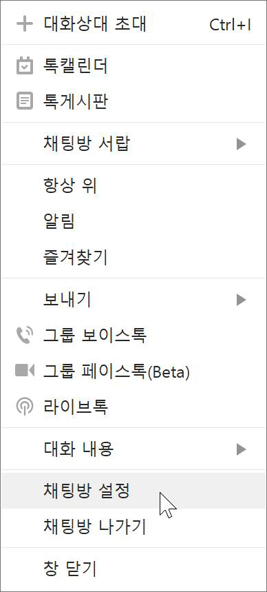 팝업창 하단에 '채팅방 설정'을 선택합니다.