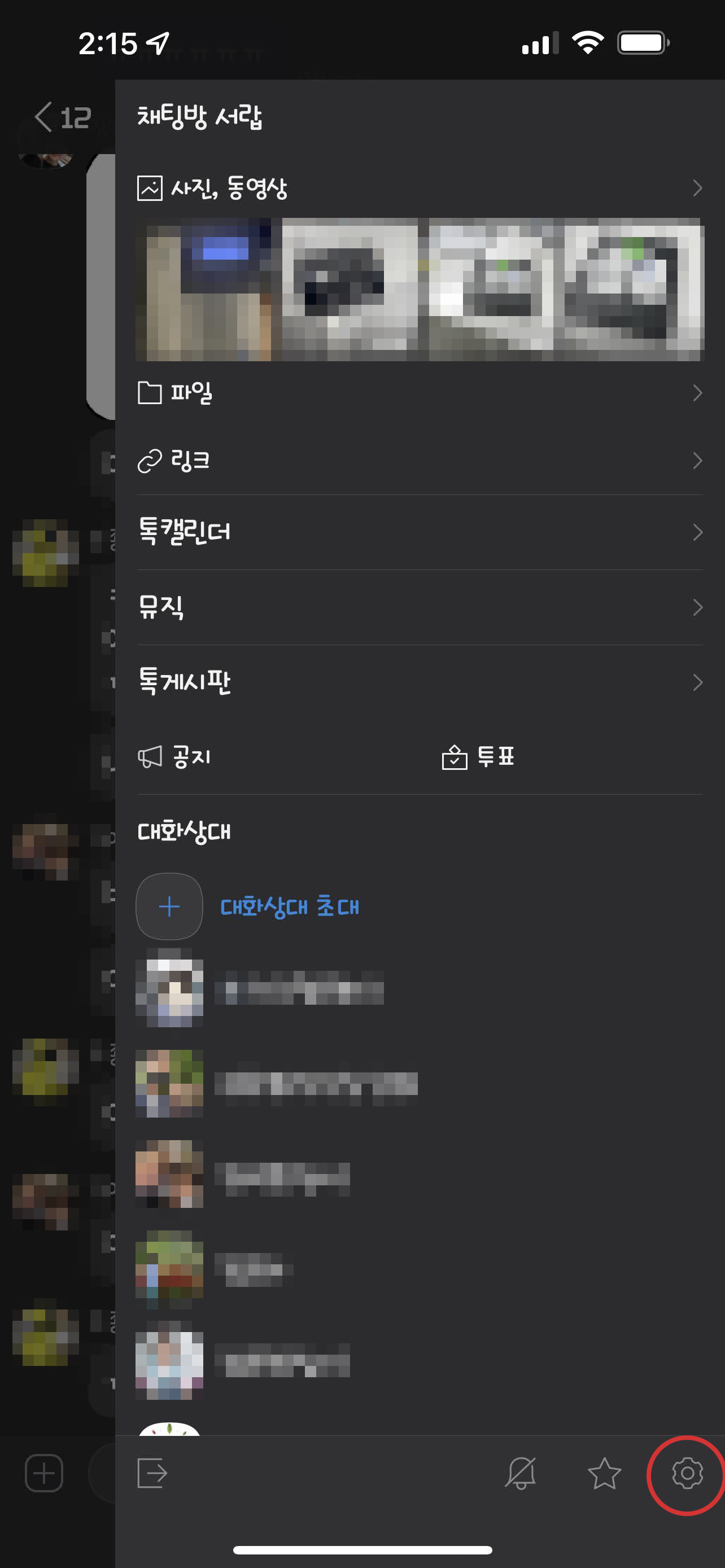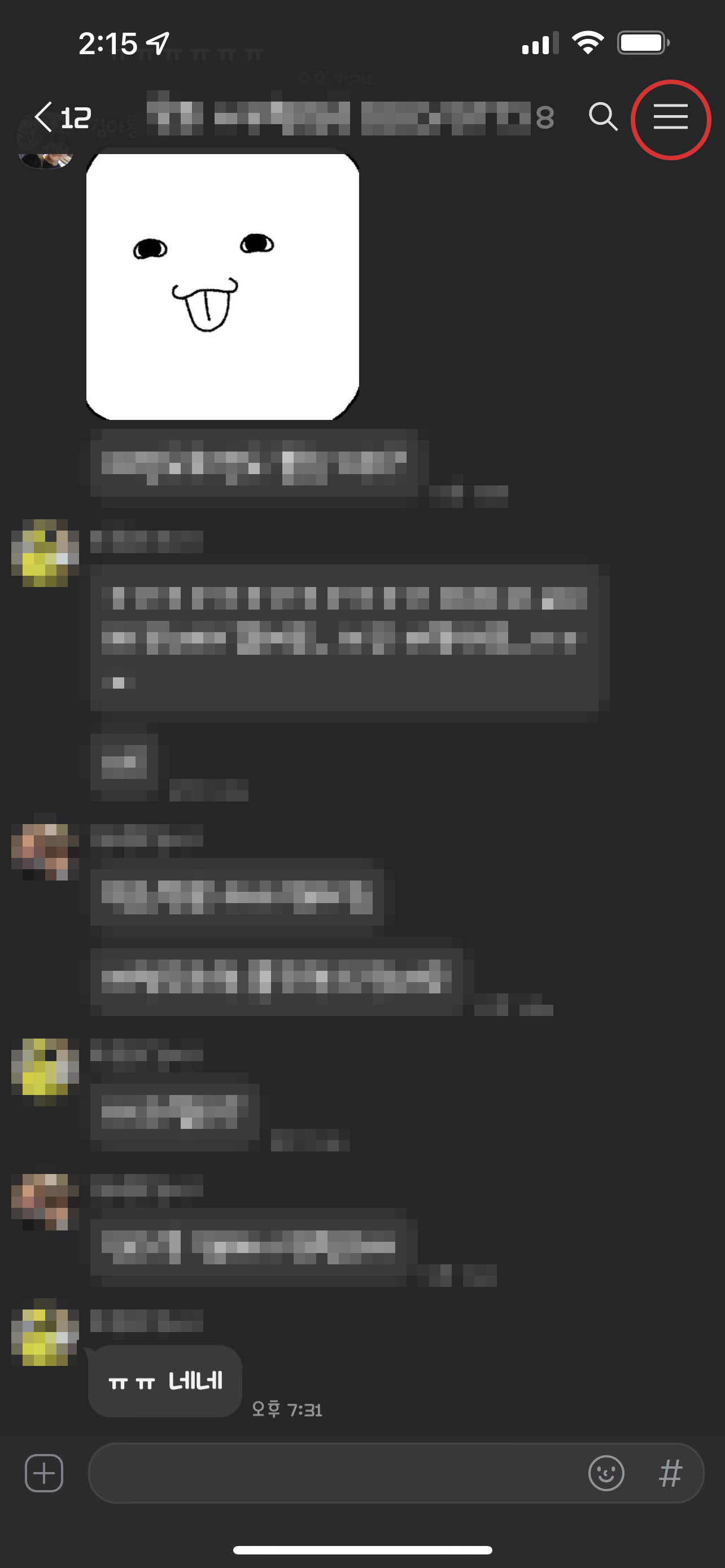 단체 채팅방에 들어가서 우측 상단의 '≡' 키를 누른 후