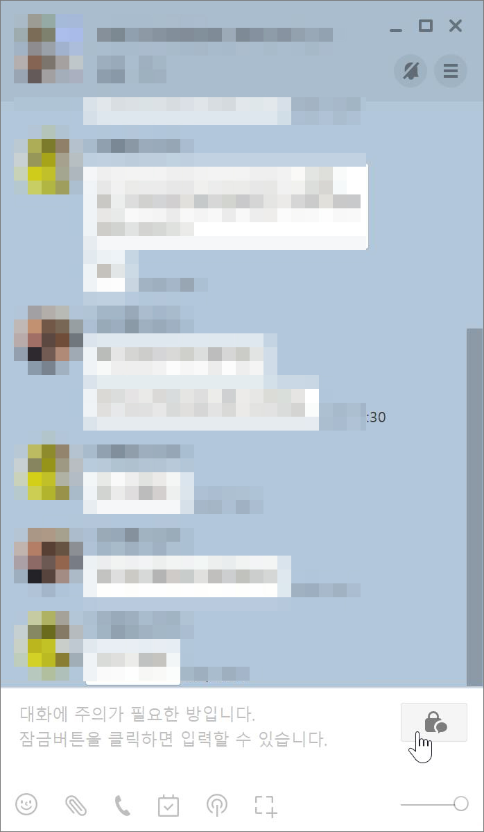 단톡방에서 '입력창 잠금' 기능을 사용하시면 이러한 실수를 미리 예방할 수 있습니다. 핸드폰용 카톡은 물론 PC용 카카오톡에서도 지원되는 기능이니 활용하시면 좋을 것 같습니다.