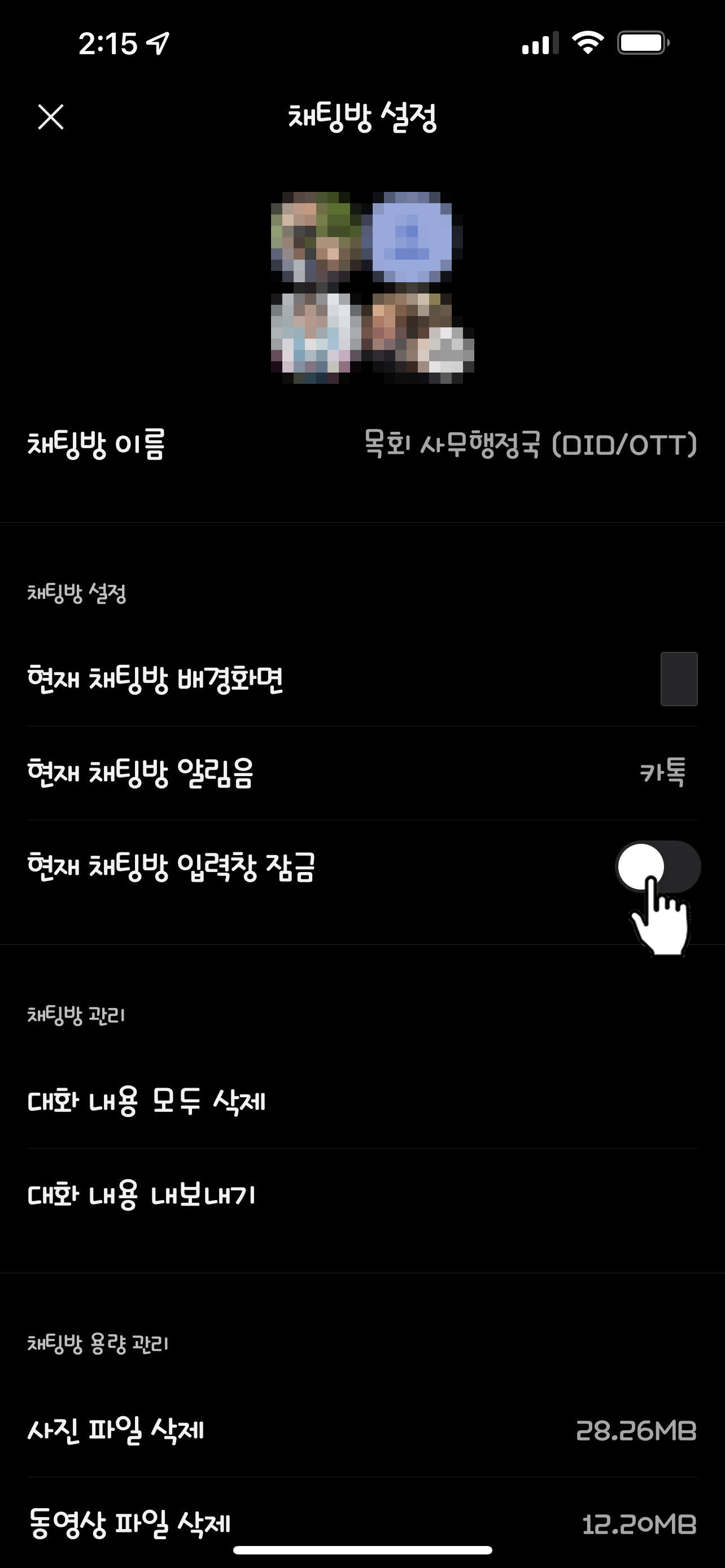 채팅방 설정에서 중앙에 '현재 채팅방 입력창 잠금'을 켜 줍니다.