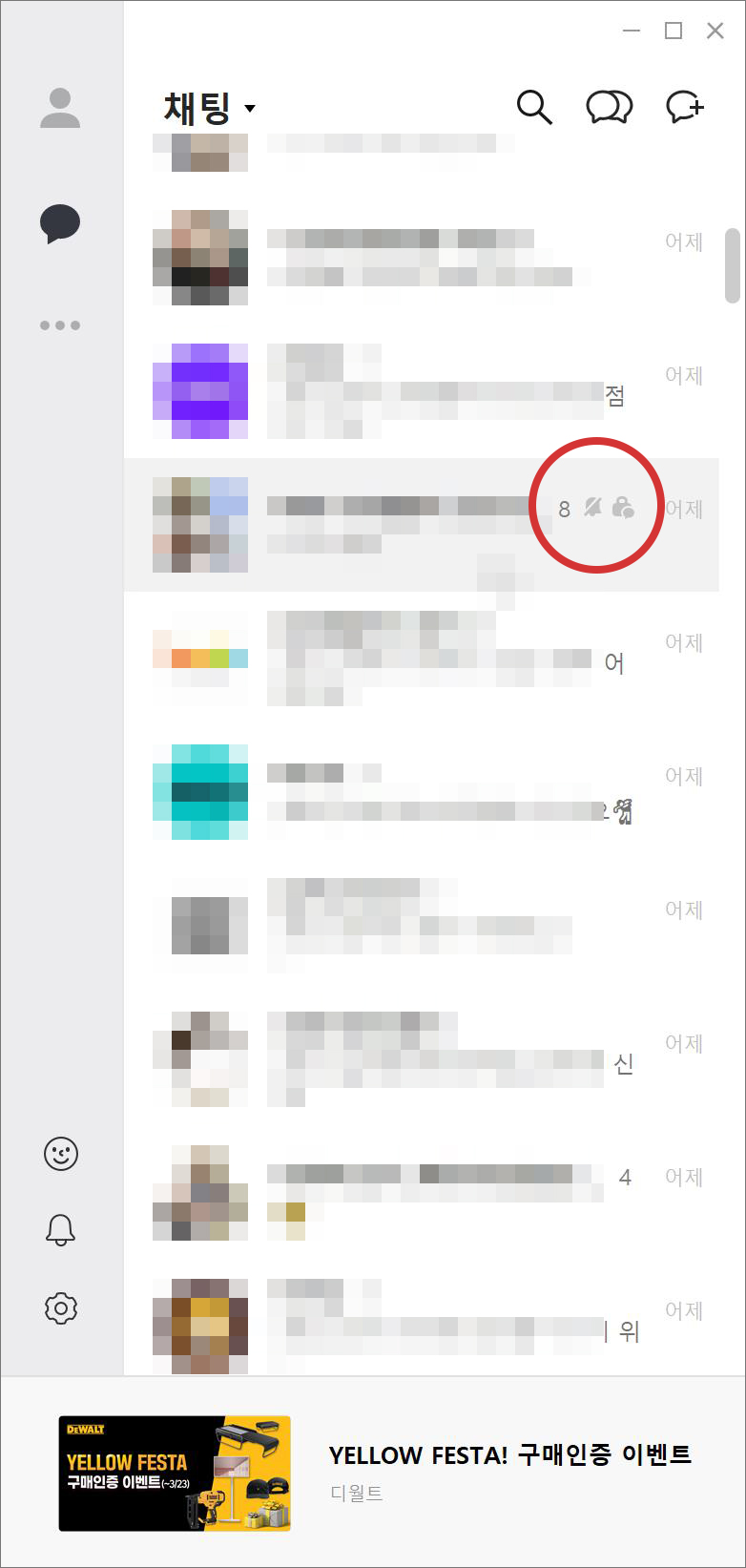 입력창이 잠겨있는 단톡방은 위와 같이 리스트에도 자물쇠 버튼이 나타나 확인이 가능합니다.