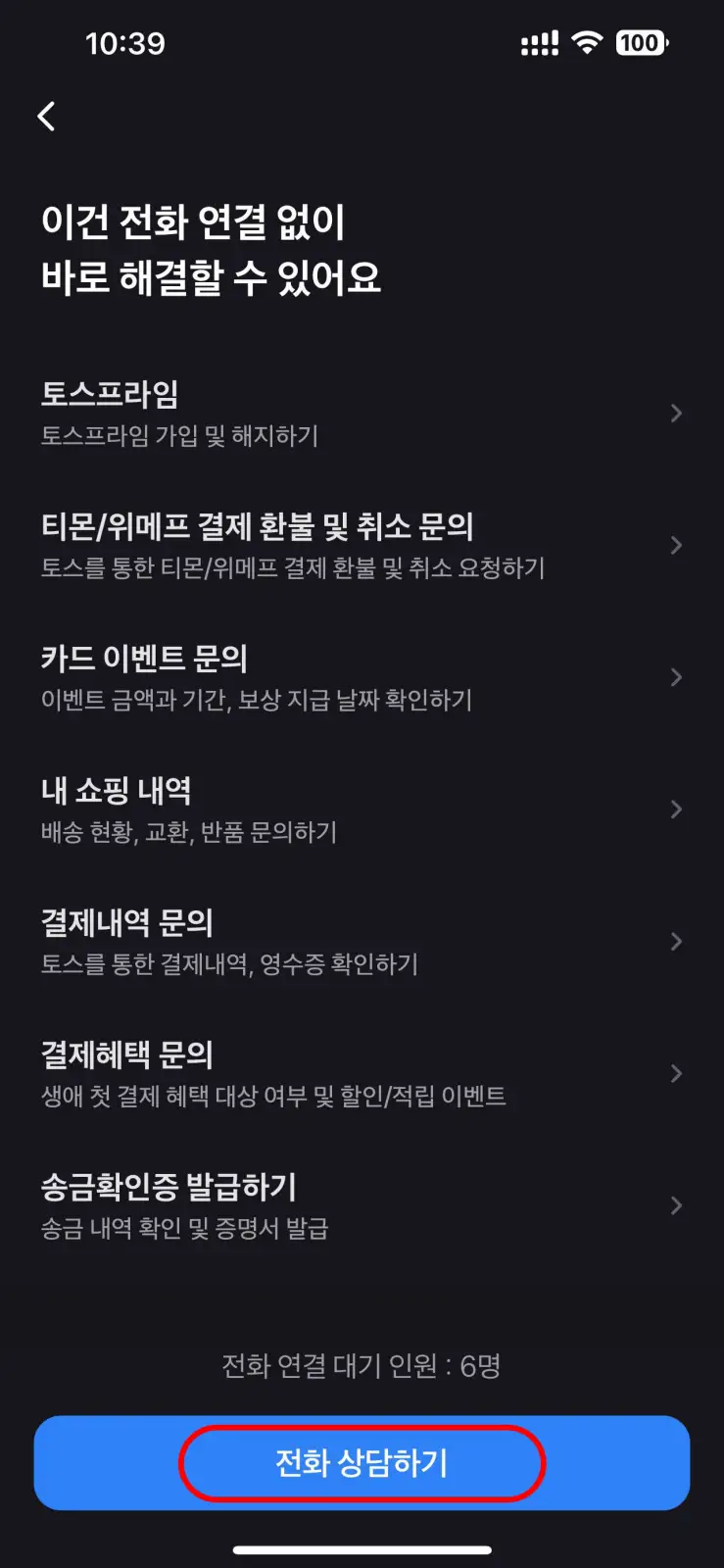 5. 토스 앱에서 바로 고객센터 연결이 가능한가요?
