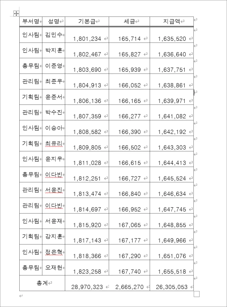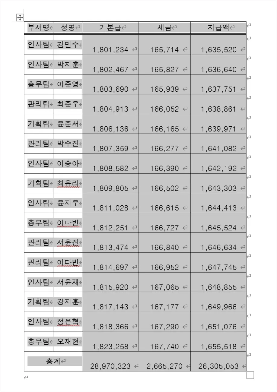 - 다시 MS워드에서 표를 선택하여 Ctrl + C 단축키로 클립보드에 표를 복사 합니다.