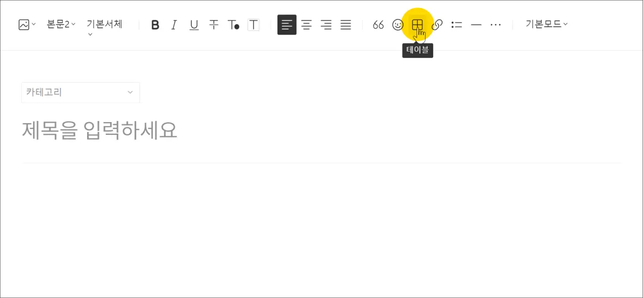 - 상단 메뉴에서 격자 모양의 테이블 아이콘을 선택합니다.