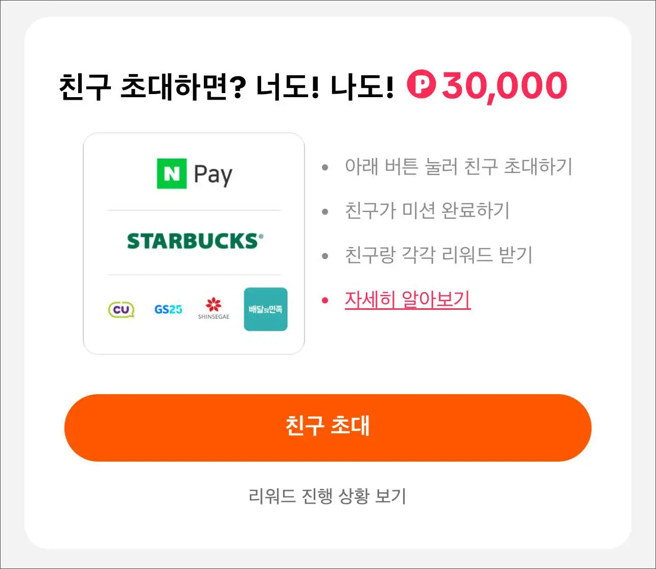 - 초대받은 링크를 통해 가입하면 초대자와 초대받은 사람 모두에게 보상이 주어집니다.