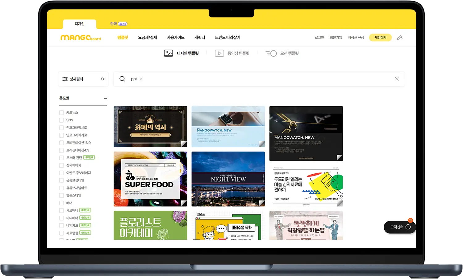 디자인 제작툴인 망고보드는 파워포인트 템플릿 뿐 아니라 다양한 디자인 도구를 제공합니다. 프레젠 테이션 템플릿을 이용하면 새로운 아이디어를 얻을수도 있습니다.