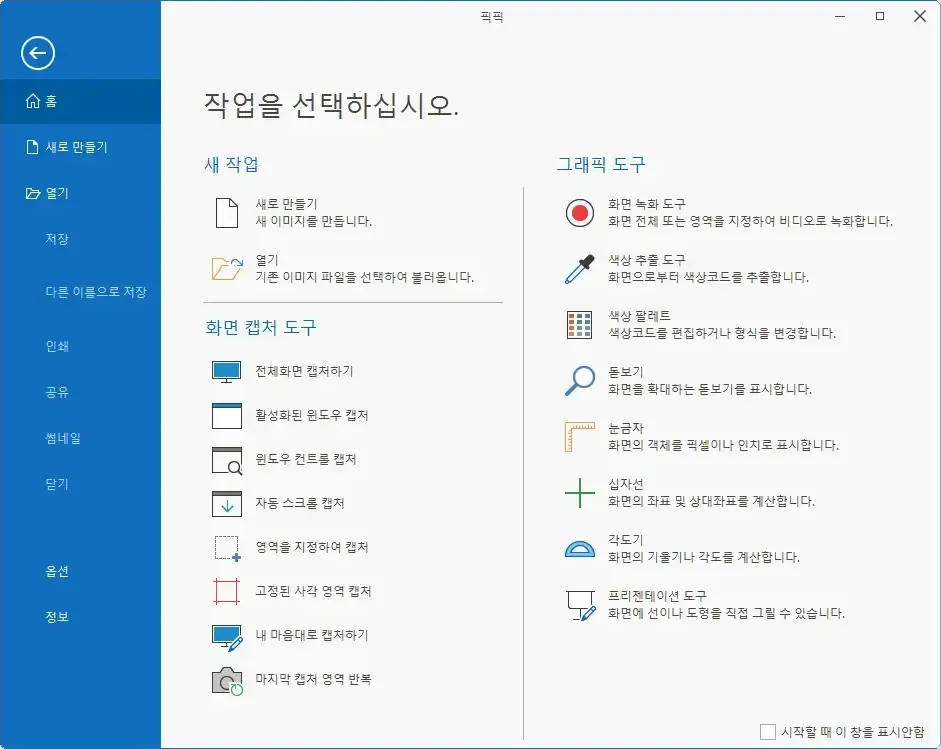 PicPick은 이미지 캡처와 기본적인 편집에 특화된 프로그램으로, 화면 스크롤 캡처와 고정된 영역 캡처 등의 다양한 캡처 기능을 제공합니다.
