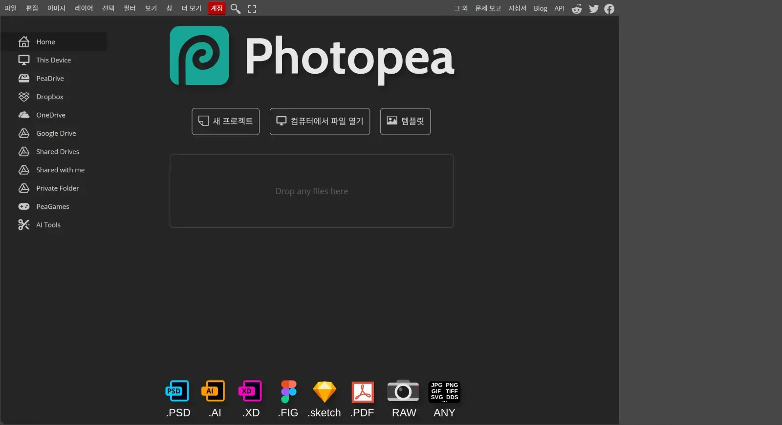 포토샵의 PSD 파일뿐만 아니라 여러 포맷을 지원하여 매우 유용하며, 템플릿 기능도 제공되어 간단한 이미지 편집뿐만 아니라 다양한 용도로 활용할 수 있습니다.