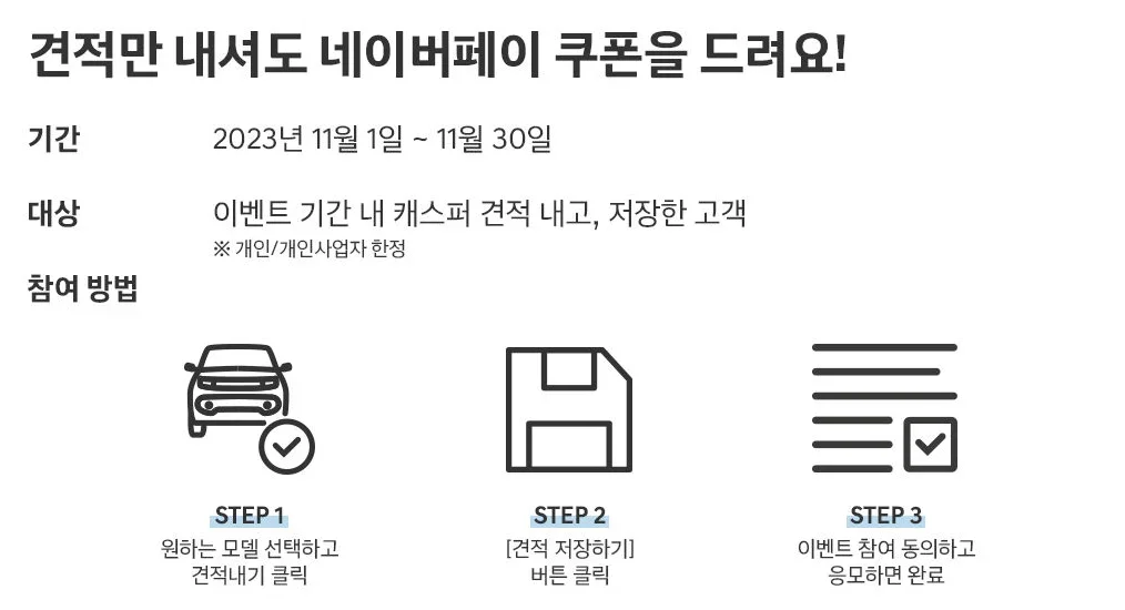 견적저장 이벤트로 200명을 추첨하여 네이버 페이 30,000원 쿠폰을 증정