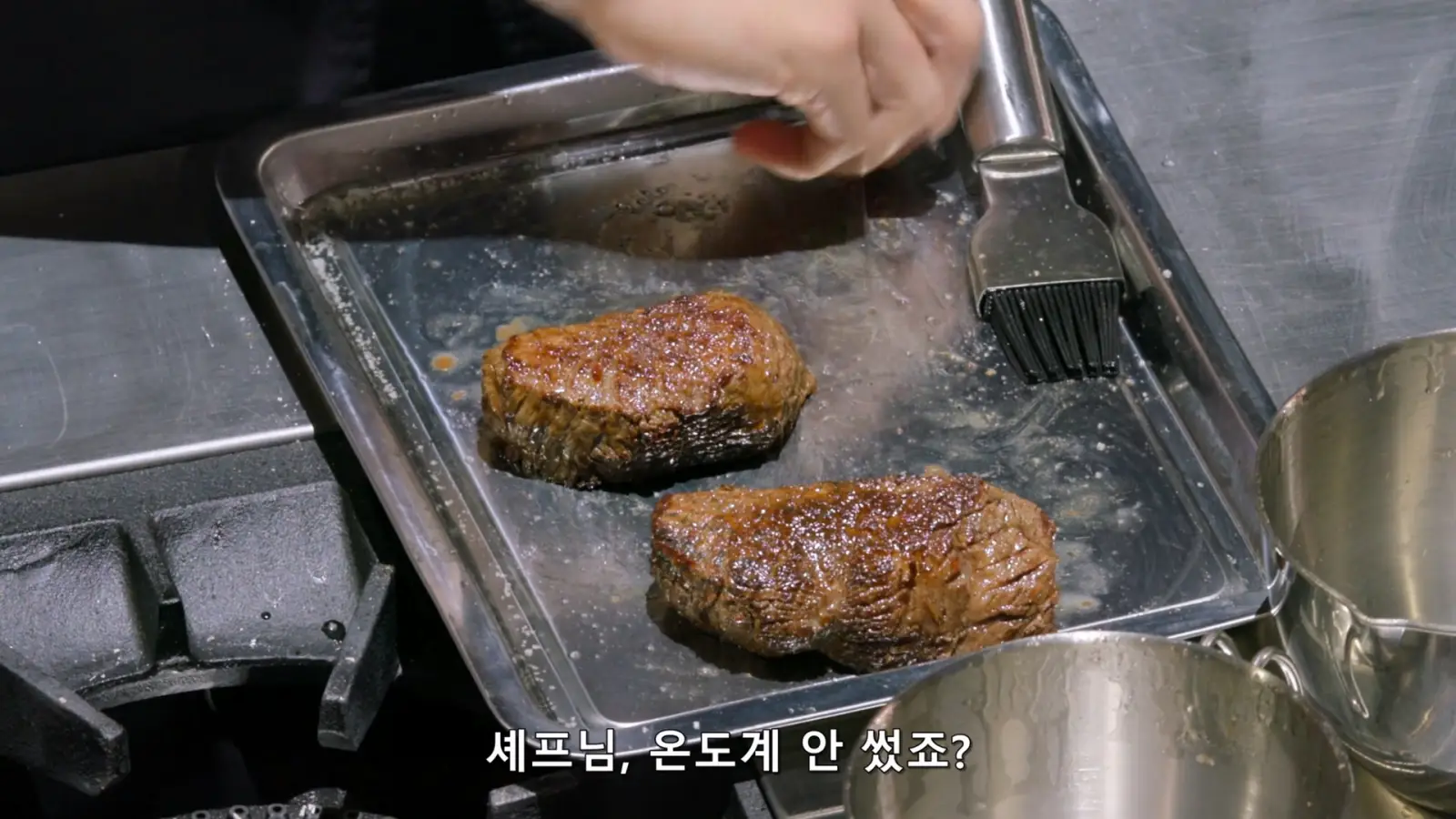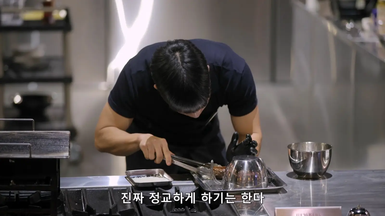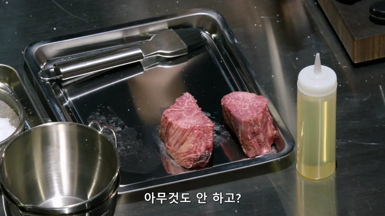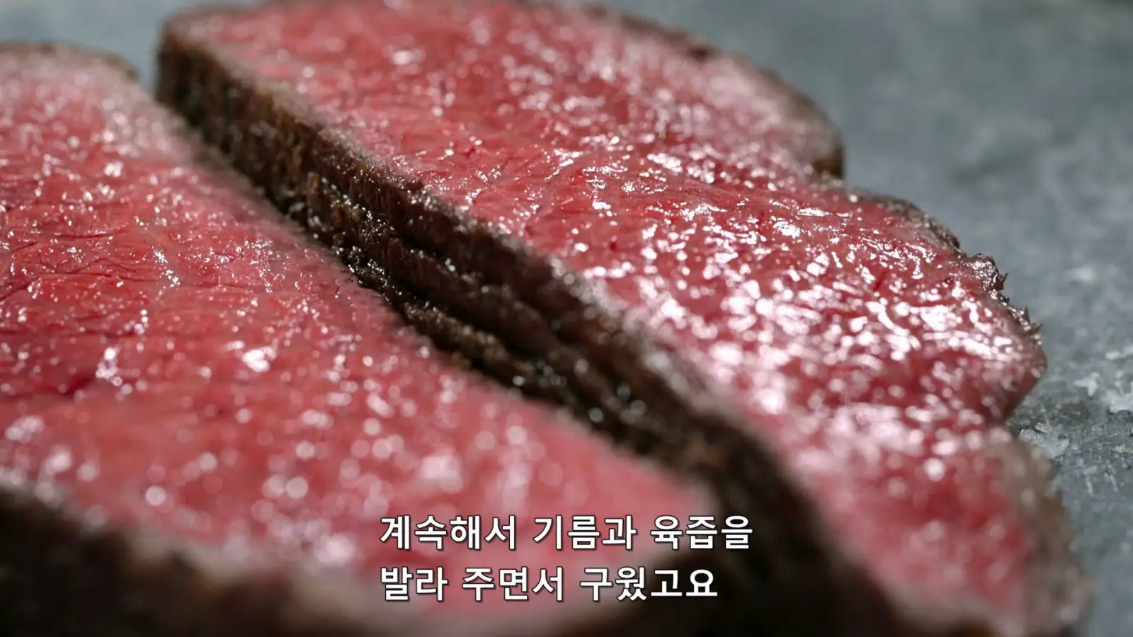 그가 보여준 스테이크 요리는 화려한 기교나 복잡한 소스 없이, 고기 본연의 맛을 살리는 방식으로 조리됩니다.