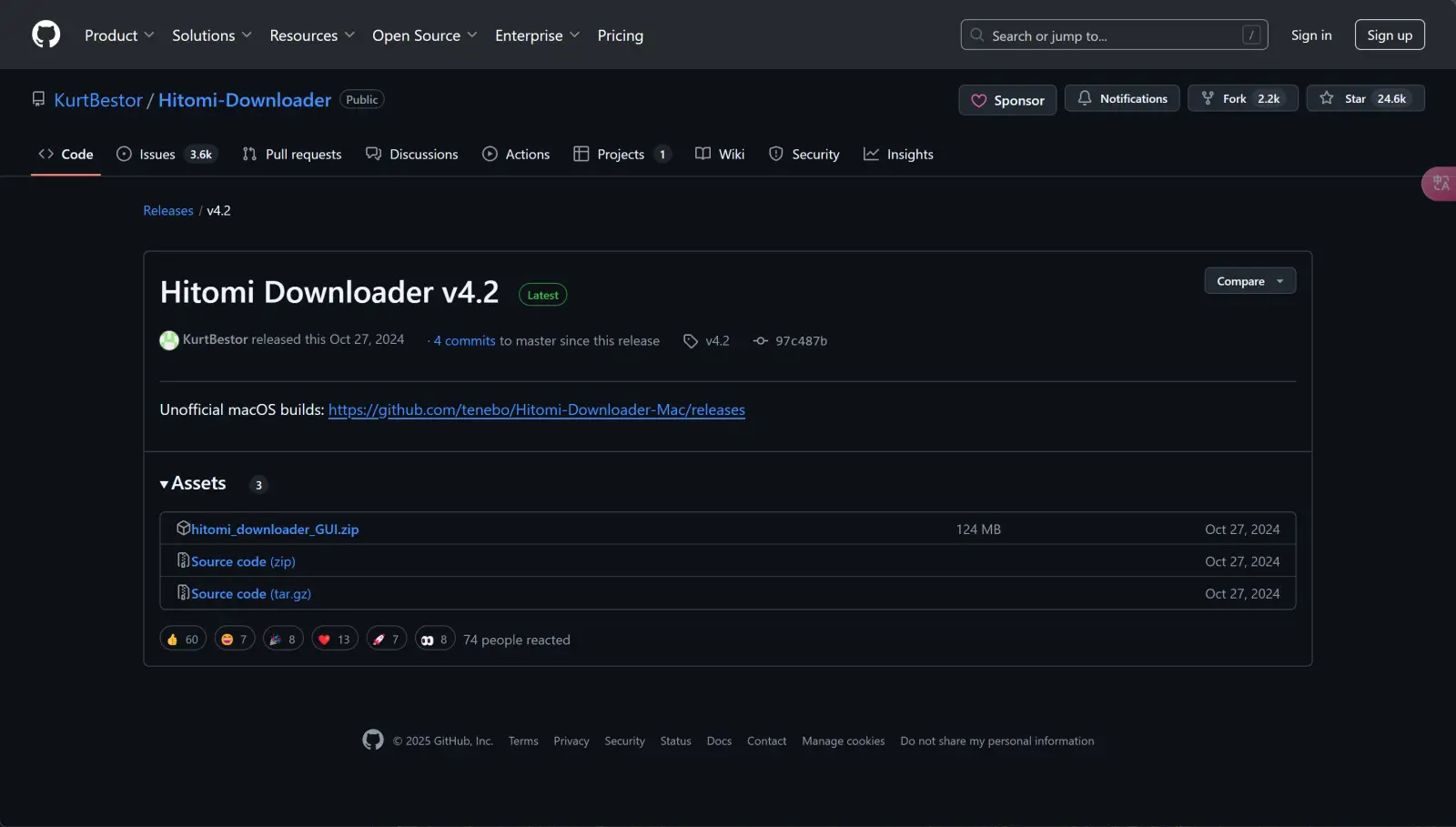 히토미 다운로더는 GitHub에서 배포되며, 공식 저장소 주소는 https://github.com/KurtBestor/Hitomi-Downloader입니다.