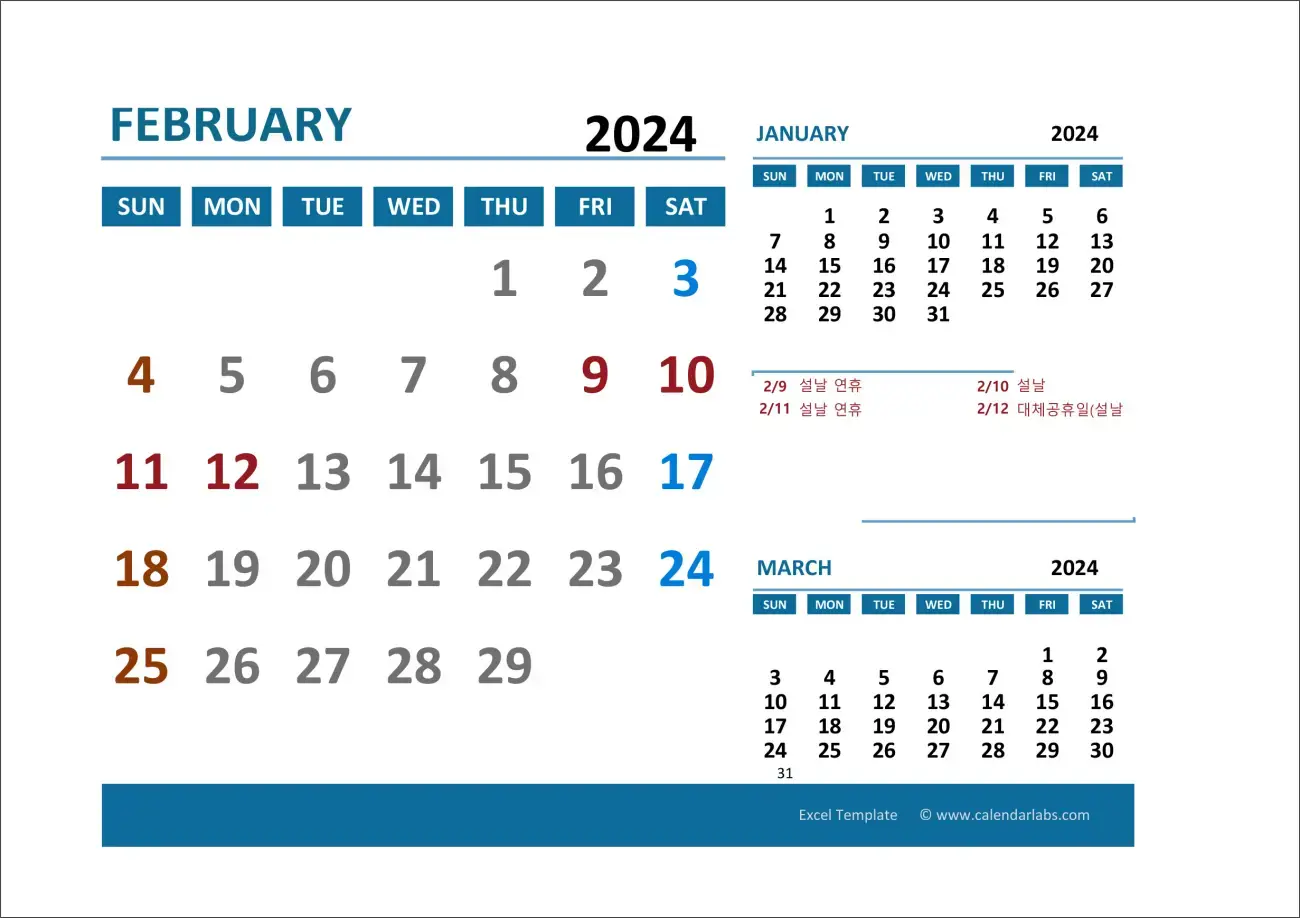 2024년 달력 엑셀파일 무료 다운로드 디자인 3종