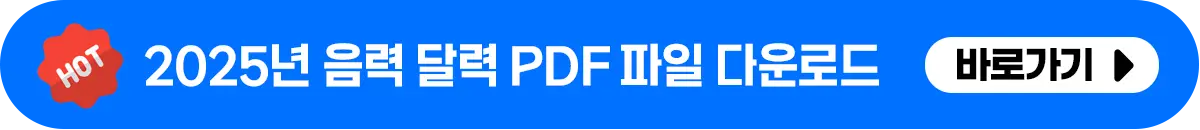 "2025년 달력(캘린더) 출력용 PDF 무료 다운로드 - 음력 표기"