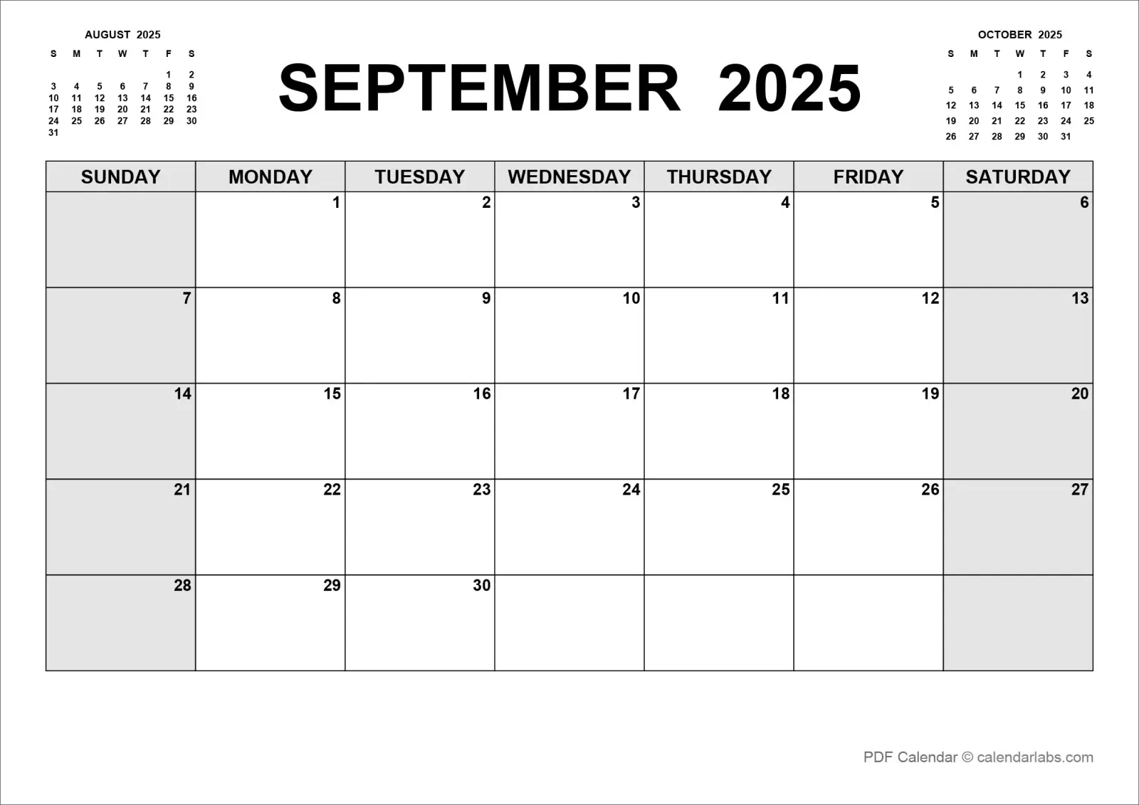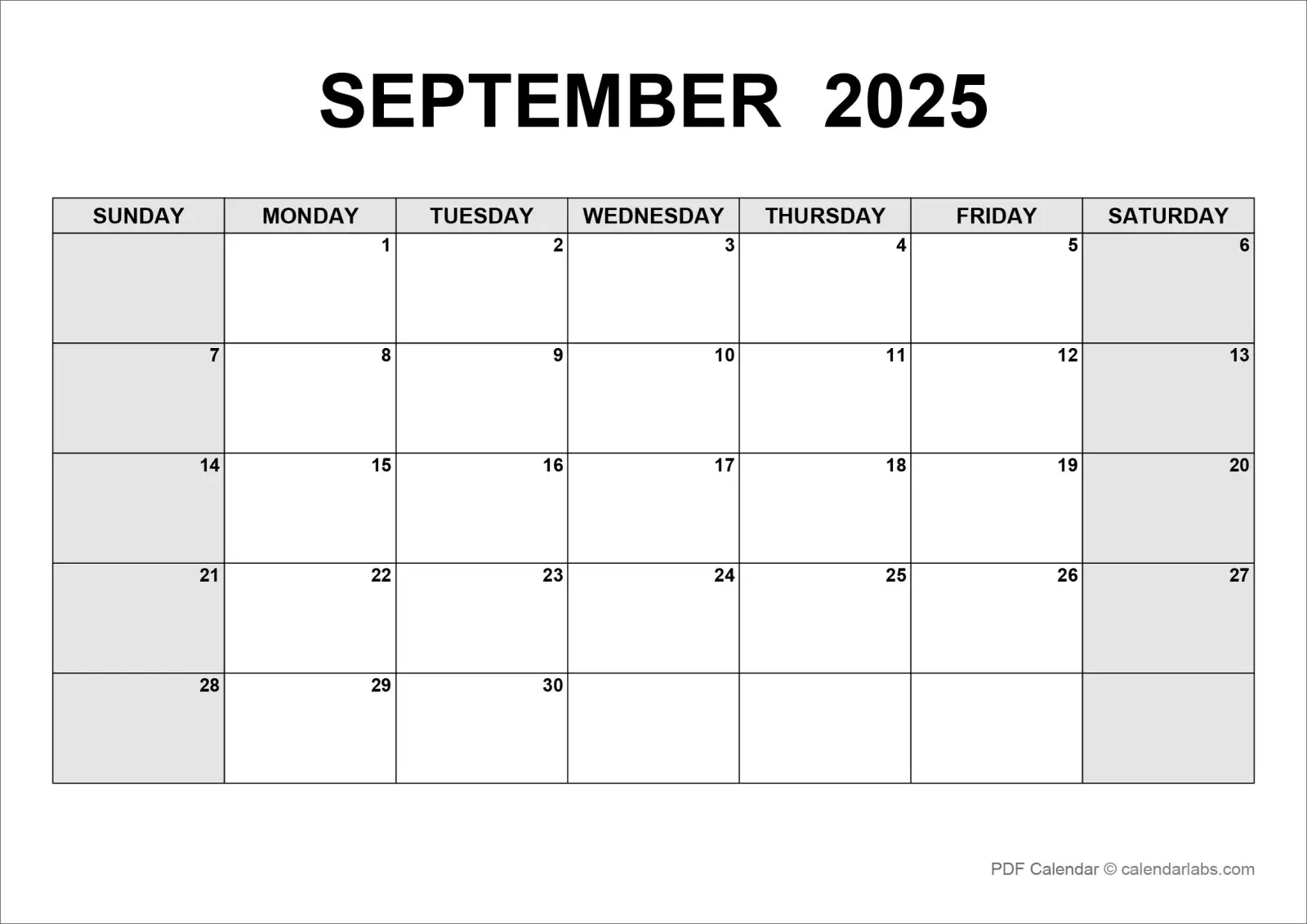 2025년 9월 달력 프린트용 엑셀, PDF 파일 무료 다운로드