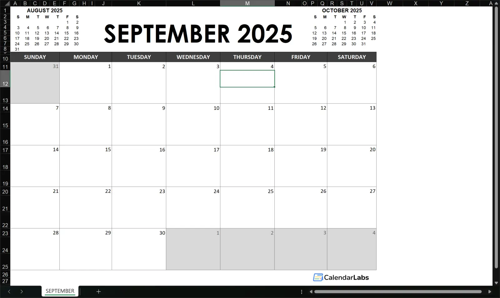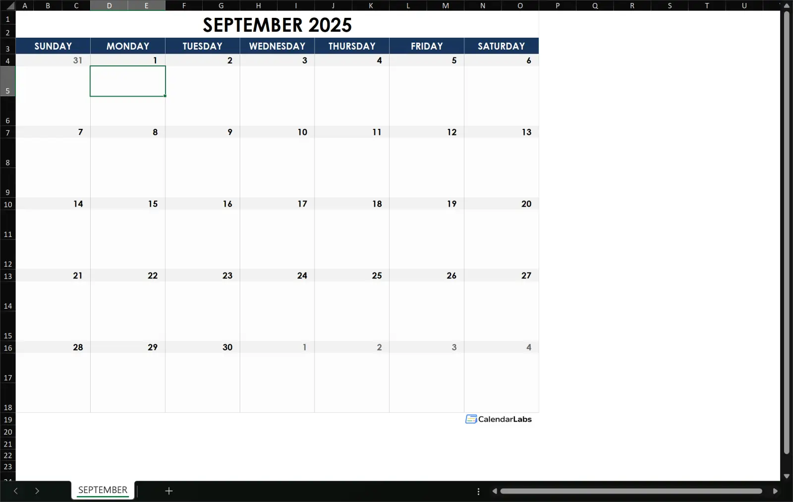 "2025년 9월 달력 프린트용 엑셀, PDF 파일 무료 다운로드"
