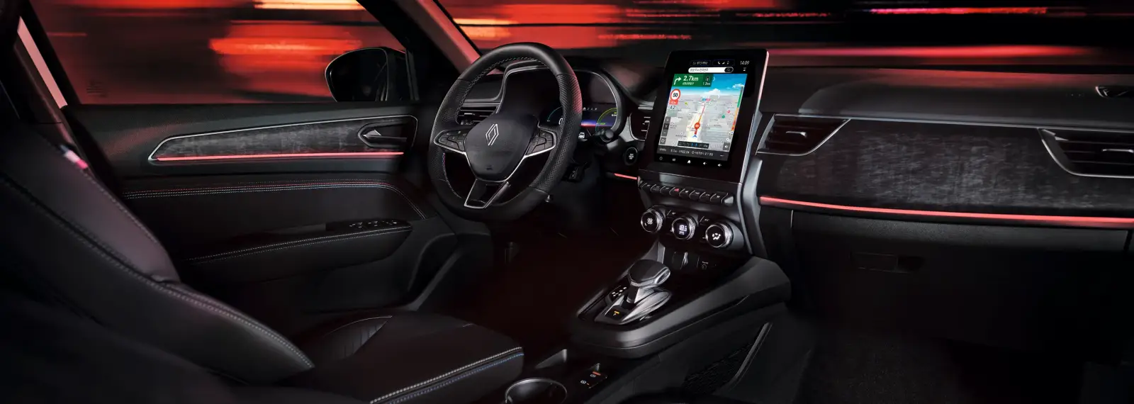차량 선택할 때 실내 공간이나 편의 기능도 중요하잖아요? 르노 아르카나는 이 부분에서도 꽤 신경 쓴 티가 나더라고요. 실내에는 애플 카플레이와 구글 안드로이드 오토를 무선으로 연결할 수 있는 오픈 알 9.3인치 세로형 플로팅 AVN 모니터가 적용되어 있습니다. 덕분에 내비게이션이나 미디어 사용이 정말 편리해요. 토글 방식의 센터페시아 버튼과 레버식 기어레버, 그리고 무난한 3스포크 스티어링 휠도 조작이 직관적입니다. 10.25인치 디지털 디스플레이도 시인성이 좋고요.