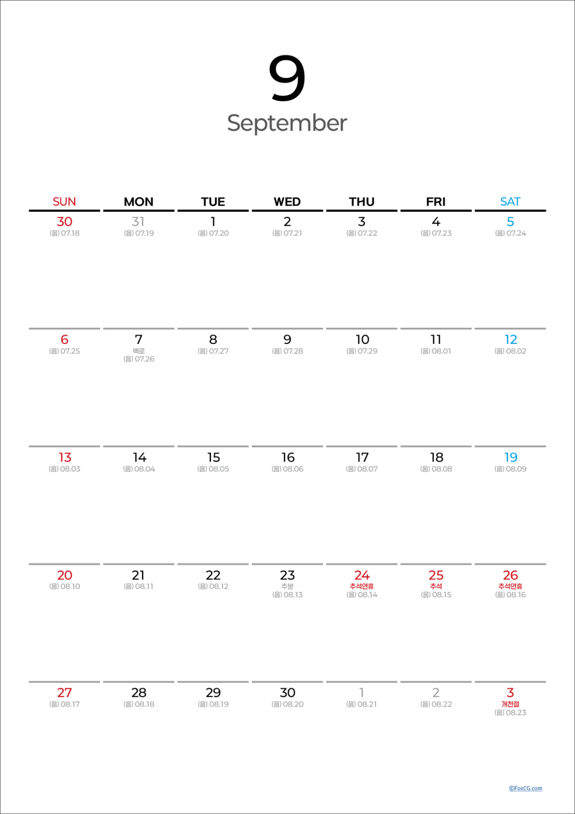 - 9월 24일 (목) ~ 9월 27일 (일): 추석 연휴