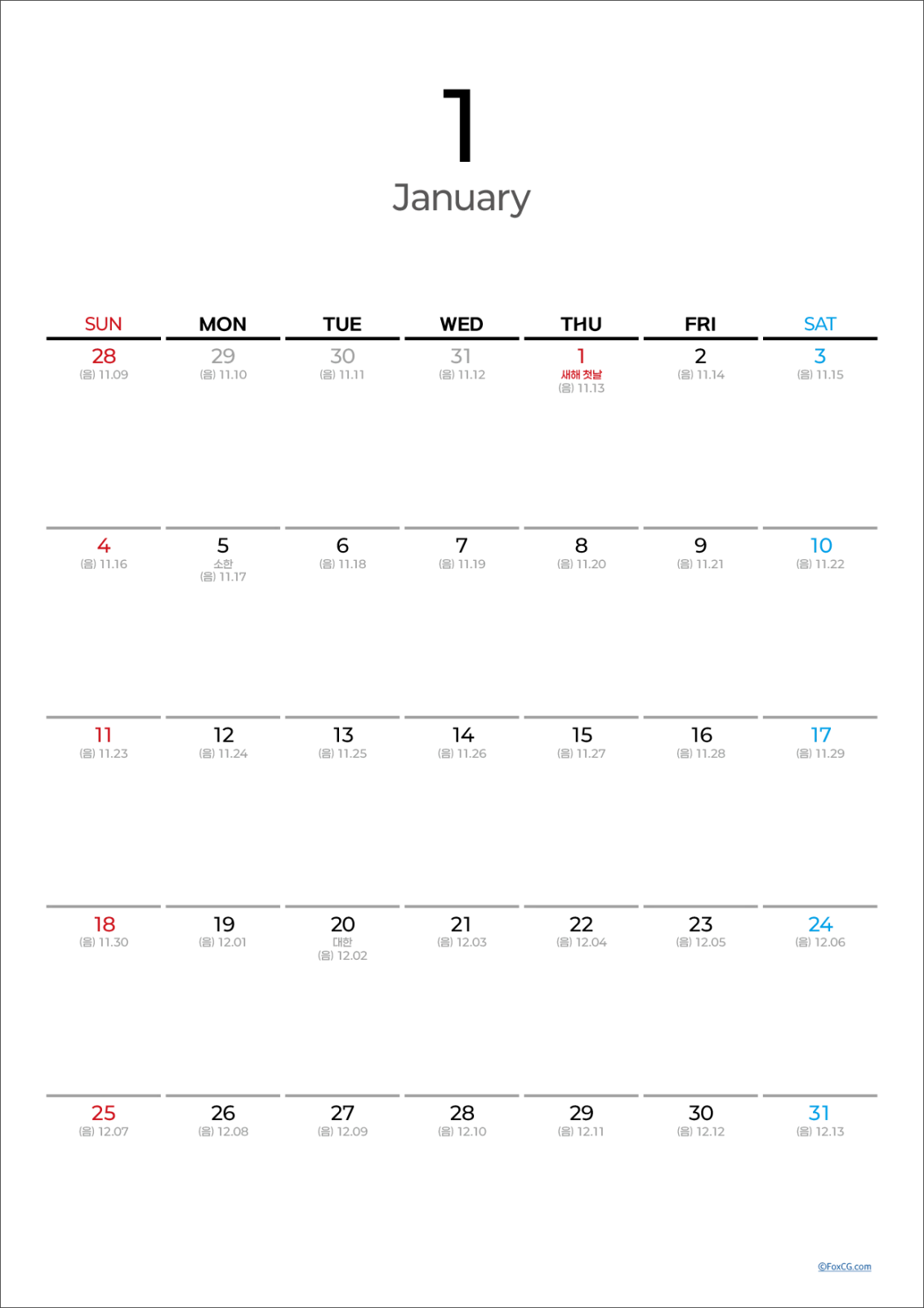 "2026년 달력(캘린더) 출력용 PDF/PNG 무료 다운로드 - 음력 표기"